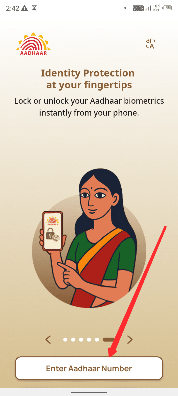 सभी फीचर देखने के बाद आधार नंबर लिखने के लिए कहा जाएगा जिस आधार कार्ड को आप डाउनलोड करना चाहते हैं इस आधार कार्ड का नंबर तैयार कर ले तथा enter Aadhar number पर क्लिक कर दें।