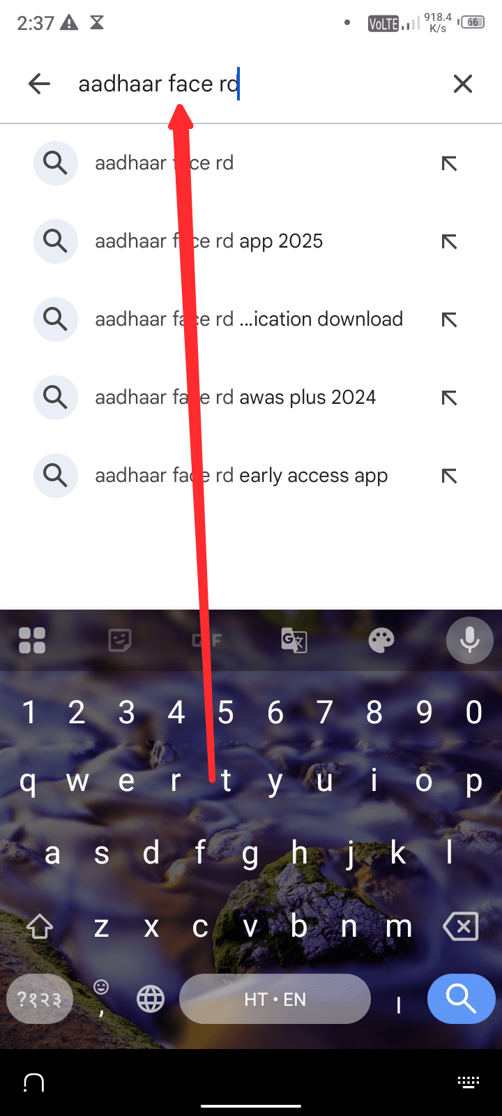आधार कार्ड का एप्लीकेशन डाउनलोड पर लगाने के बाद Search ऑप्शन पर क्लिक करें तथा अब दूसरे एप्लीकेशन का नाम लिखकर सर्च करें, Adhaar Face Rd यह लिखकर सर्च करने के बाद आपके सामने दूसरा एप्लीकेशन दिखेगा।