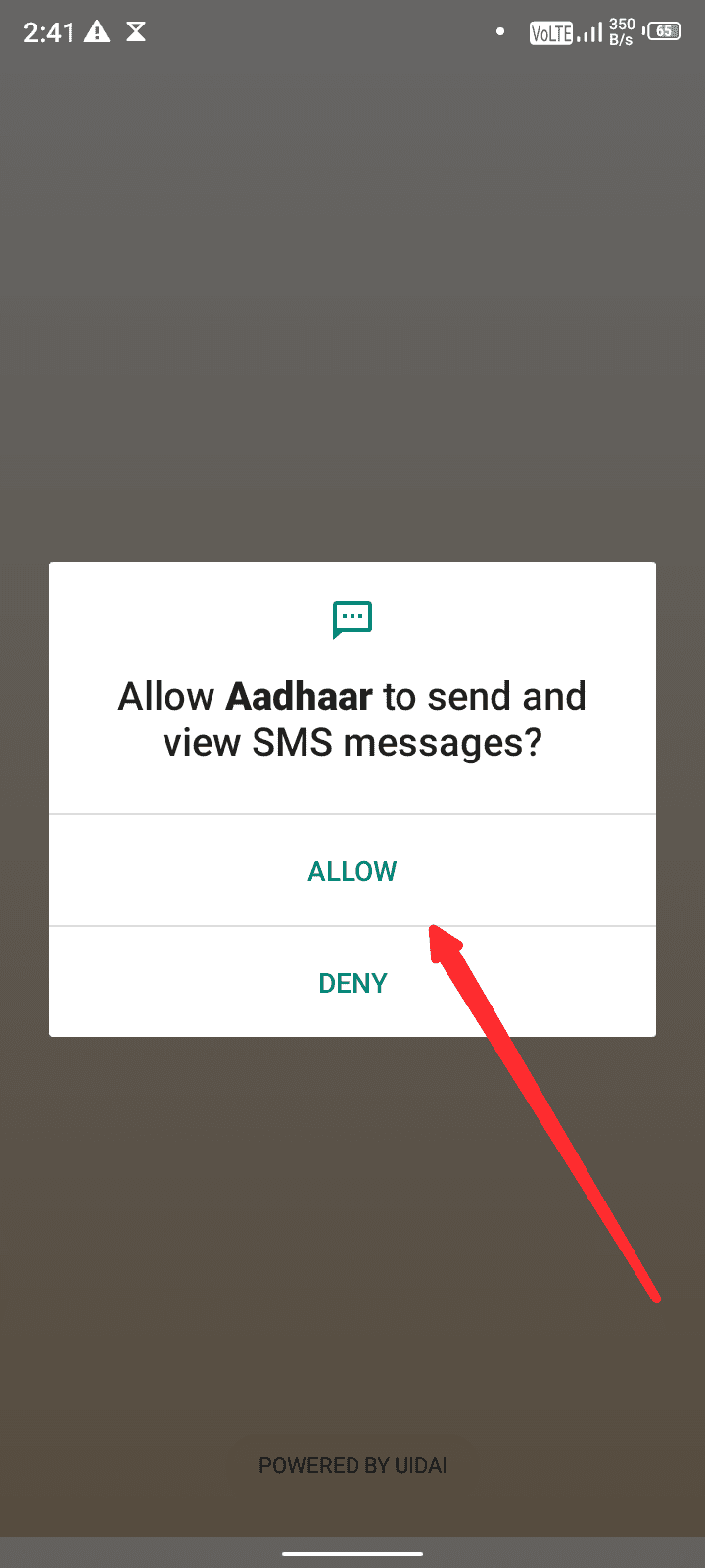 सभी परमिशन देने के बाद में आपको SMS की परमिशन को देना है यह इसलिए होता है ताकि OTP आने पर एप्लीकेशन में ऑटोमेटेकली दर्ज हो जाए। इसको भी सबमिट कर दें।