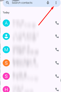 सबसे पहले आपको अपने मोबाइल में फोन डायलर एप्लीकेशन ओपन करना है फोन डायलर एप्लीकेशन में आने के बाद आपको राइट साइड में ऊपर 3 डॉट पर क्लिक करना है।