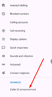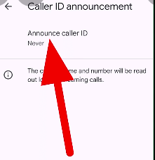 कॉलर आईडी अनाउंसमेंट पर क्लिक करने के बाद नया पेज खुलेगा यहां पर आपको Announce ID caller पर क्लिक करना है।