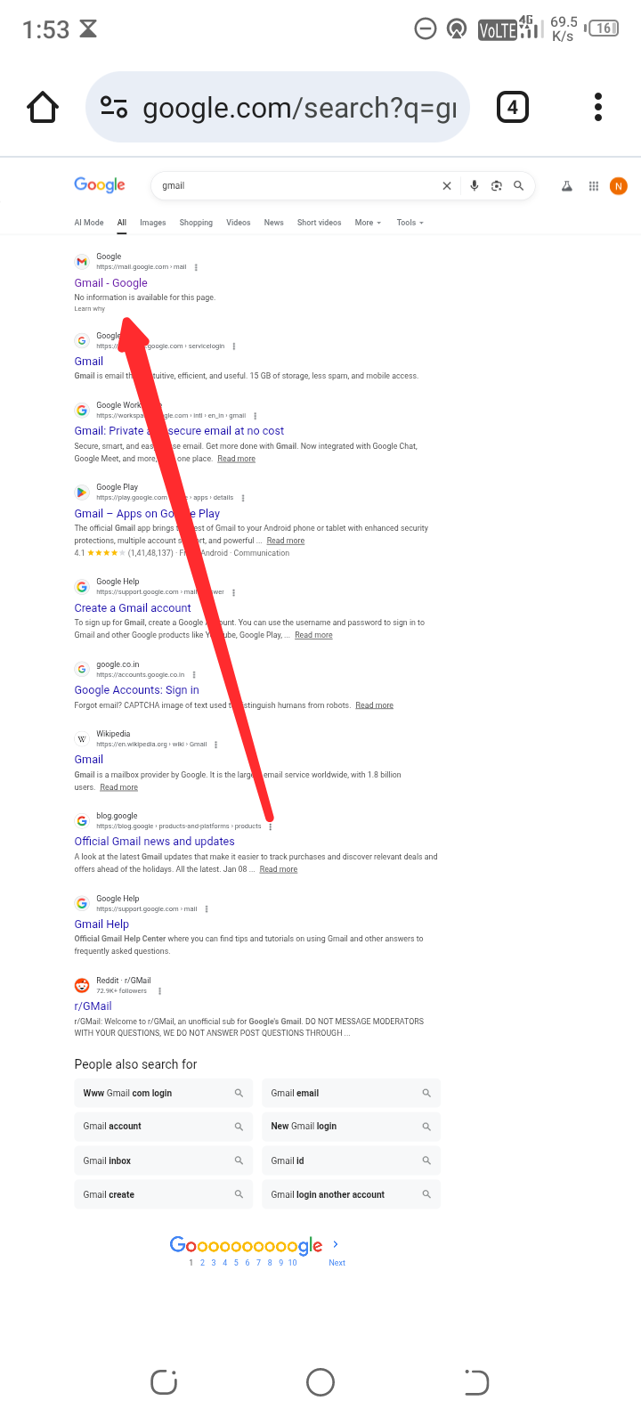 सबसे पहले आपको अपने मोबाइल में क्रोम एप्लीकेशन को ओपन करना है गूगल पर नहीं जाना है क्रोम एप्लीकेशन में आने के बाद आपको Gmail लिखकर सर्च करना है।