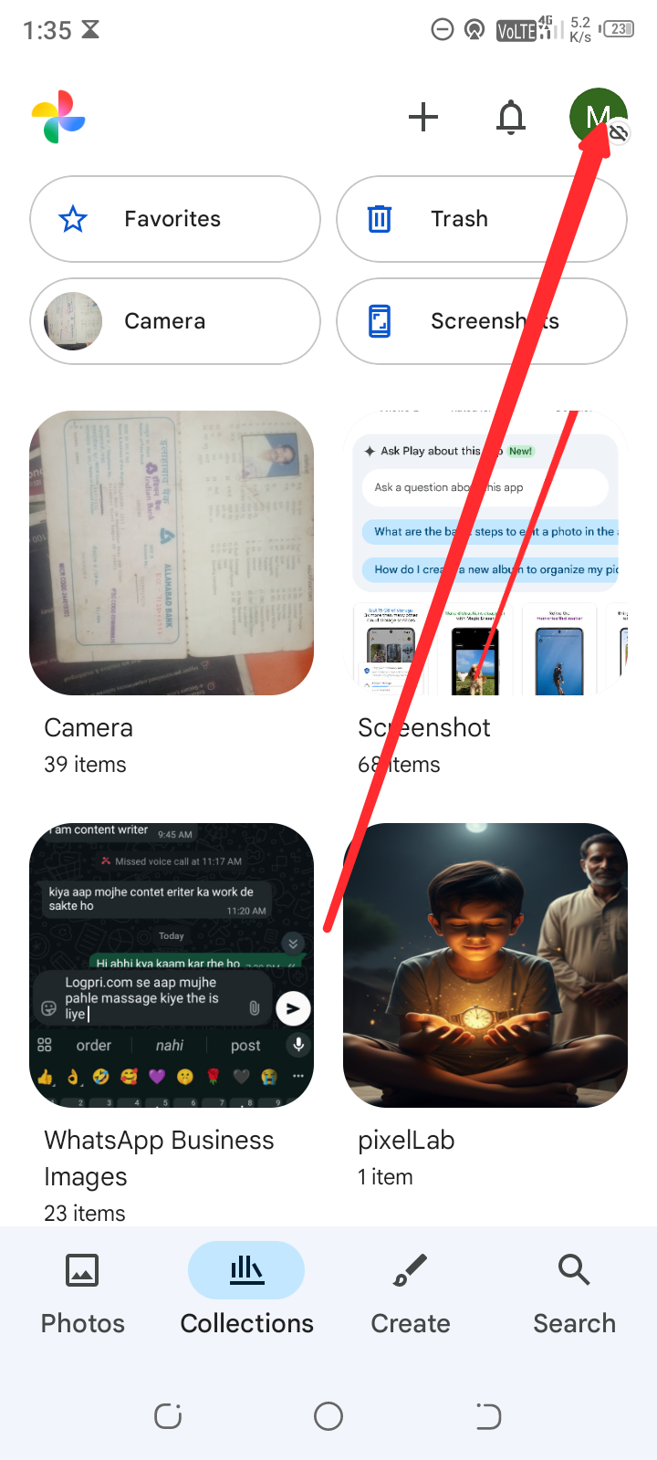 एप्लीकेशन के अंदर आने के बाद सबसे पहले वही एप्लीकेशन को सेलेक्ट करें जो आप ईमेल एप्लीकेशन में इस्तेमाल करते हैं और ईमेल आईडी के माध्यम से गूगल फोटो एप्लीकेशन को ओपन कर लें ओपन करने के बाद प्रोफाइल आइकन पर क्लिक करें।
