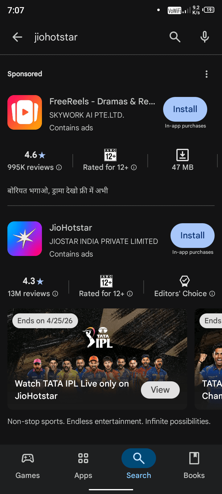 सबसे पहले आपको Play Store एप्लिकेशन में आना है। Play Store एप्लिकेशन में आने के बाद Jio Hotstar लिखकर Search करना है और Install पर Click कर देना है। एप्लिकेशन Download हो जाने के बाद Open करना है।