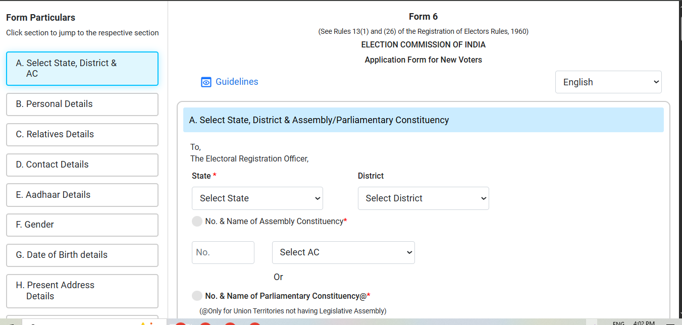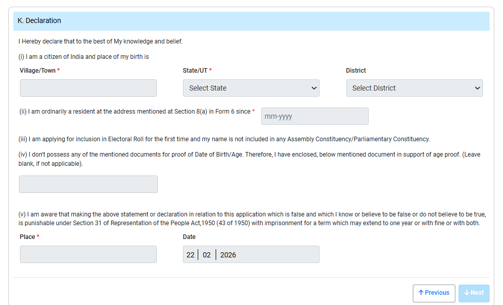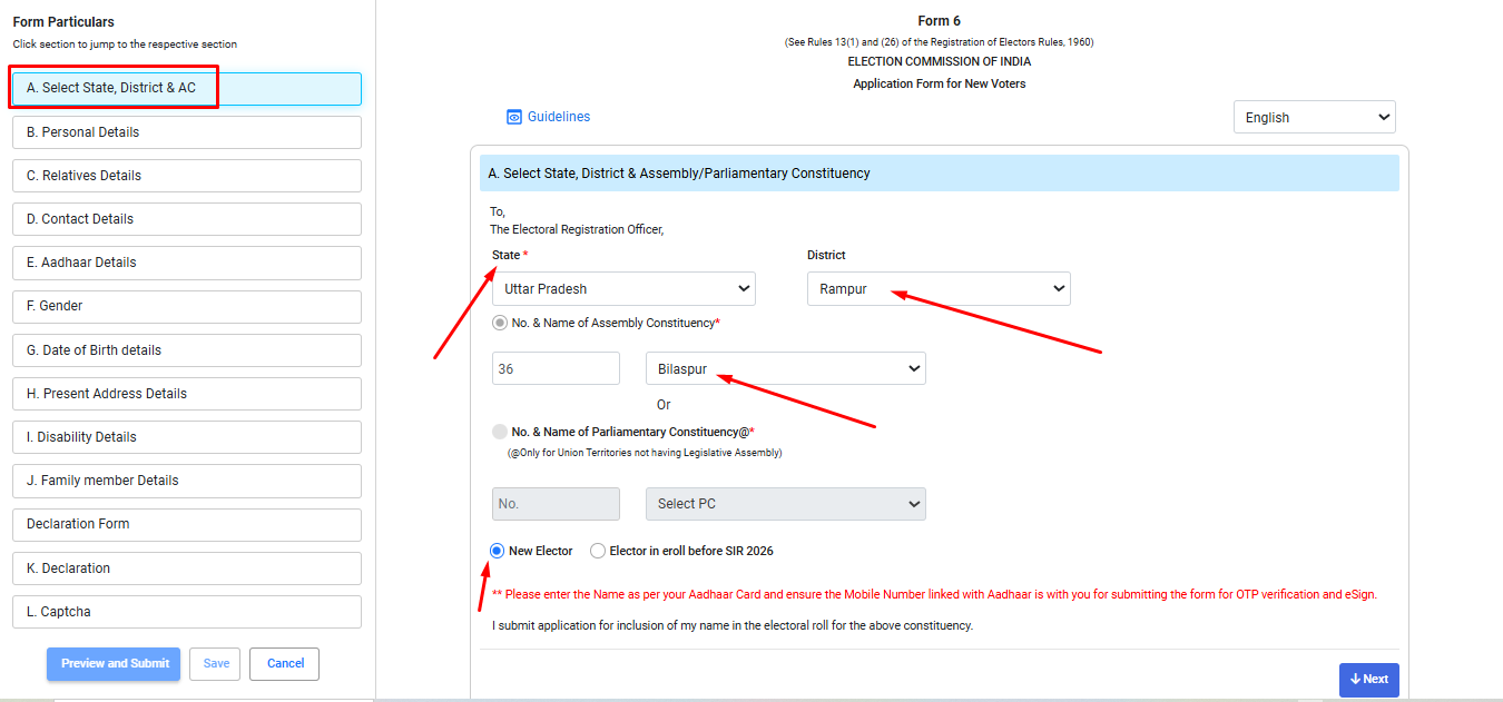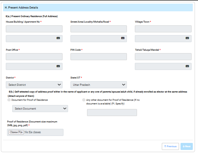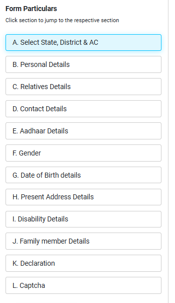 आपके सामने पूरा फॉर्म 6 ऑनलाइन खुल जाएगा यहां पर आपको सभी जानकारी को एक-एक करके दर्ज करनी है।