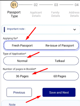 - Skip For Now पर क्लिक करने के बाद पासपोर्ट टाइप Section खुलेगा।