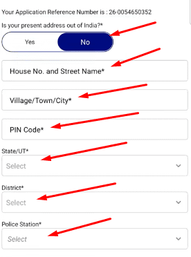 - Save And Next पर क्लिक करने के बाद present address में NO सेलेक्ट करें,