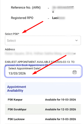- अभी आप यह पेज पर आ जाएंगे यहां पर आने के बाद PSK ऑप्शन पर क्लिक करना है जिसका मतलब है पासपोर्ट सेवा केंद्र यहां पर अपना नजदीकी पासपोर्ट ऑफिस सेलेक्ट करें।