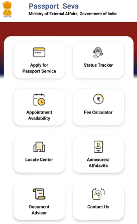 पासपोर्ट सेवा एप्लीकेशन ओपन करने के बाद आपको पहले पेज एप्लीकेशन में कुछ इस तरह से देखने के लिए मिलेगा जहां पर बहुत से ऑप्शंस होंगे अप्लाई फॉर पासपोर्ट सर्विस स्टेटस ट्रैकर अप्वाइंटमेंट अवेलेबिलिटी यहां पर पहले आपके अकाउंट क्रिएट करना होगा अकाउंट क्रिएट करने के लिए apply for passport service पर क्लिक करें।