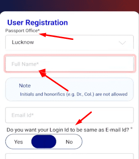 - पासपोर्ट ऑफिस सेलेक्ट करने के बाद Full Name में अपना पूरा नाम लिखें