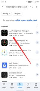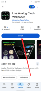 - सर्च करने पर आपको बहुत से एप्लीकेशन देखने के लिए मिलने आप Live Analog Clock Wallpaper app पर क्लिक करें,