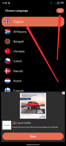 - एप्लीकेशन ओपन करने के बाद आपको सबसे पहले बहुत सी भाषा मिलेंगी इसमें आपको अपनी एक भाषा का चयन करना है और Save पर क्लिक कर देना हैं,