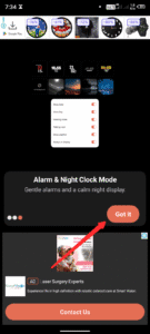 - यह सभी सेटिंग परमिशन देने के लिए है अब आपको अगले पेज में Alarm & Night Clock Mode का पेज मिलेगा यहाँ पर Got It पर क्लिक करें,