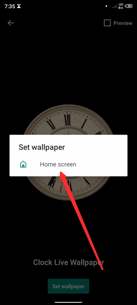 Set Wallpaper पर क्लिक करने के बाद आपको Home Screen लिखा मिलेगा आप इसी पर tap पर दें अब आपके मोबाइल के लॉक स्क्रीन पर analog set हो चूका हैं,