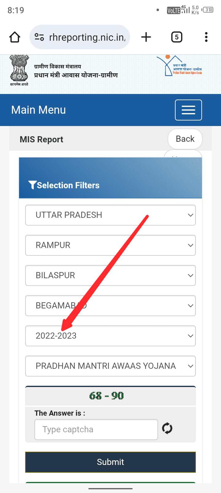 साल का चयन कर लेने के बाद अब आपको योजना का नाम सेलेक्ट करना है इस प्रधानमंत्री आवास योजना की लिस्ट चेक करने के लिए लिस्ट में से Pradhanmantri aawas Yojana scheme select करें।