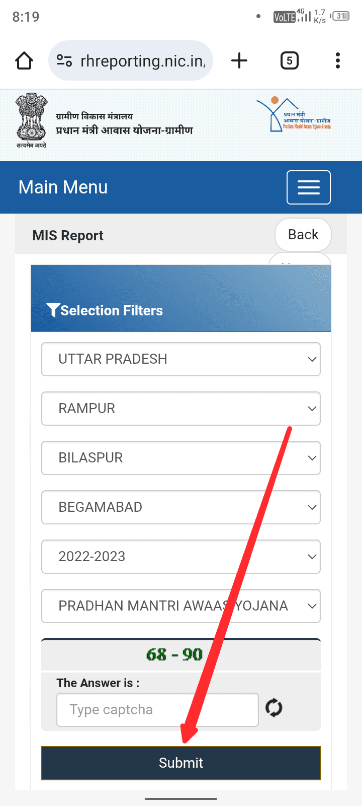 - जानकारी दर्ज करके Submit कर दें: सभी जानकारी दर्ज करें, राज्य का नाम, जिले का नाम, शहर का नाम, साल, आदि और सबमिट कर दें आपका सर्वे लिस्ट प्रस्तुत हो जाएगा।