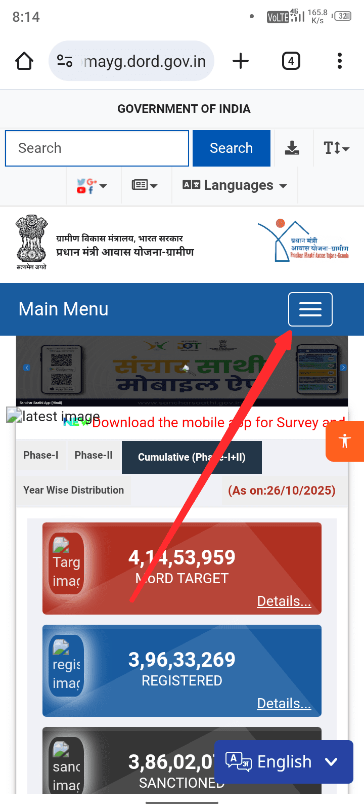 - आधिकारिक वेबसाइट पर जाएं: सबसे पहले PMAYG GOV IN वेबसाइट पर आ जाए,