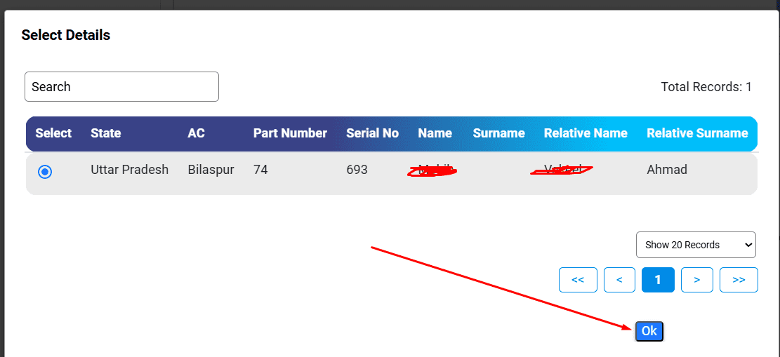 सबमिट करने के बाद आपके वोटर कार्ड की डिटेल दिखाई देगी आपको इसको पढ़ना है अगर आपका नाम और आपके पिता का नाम सही दिख रहा है तो आपको Ok पर क्लिक कर देना हैं,