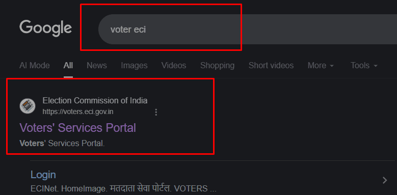 - Google पर जाएं voter eci gov लिखकर सर्च करें