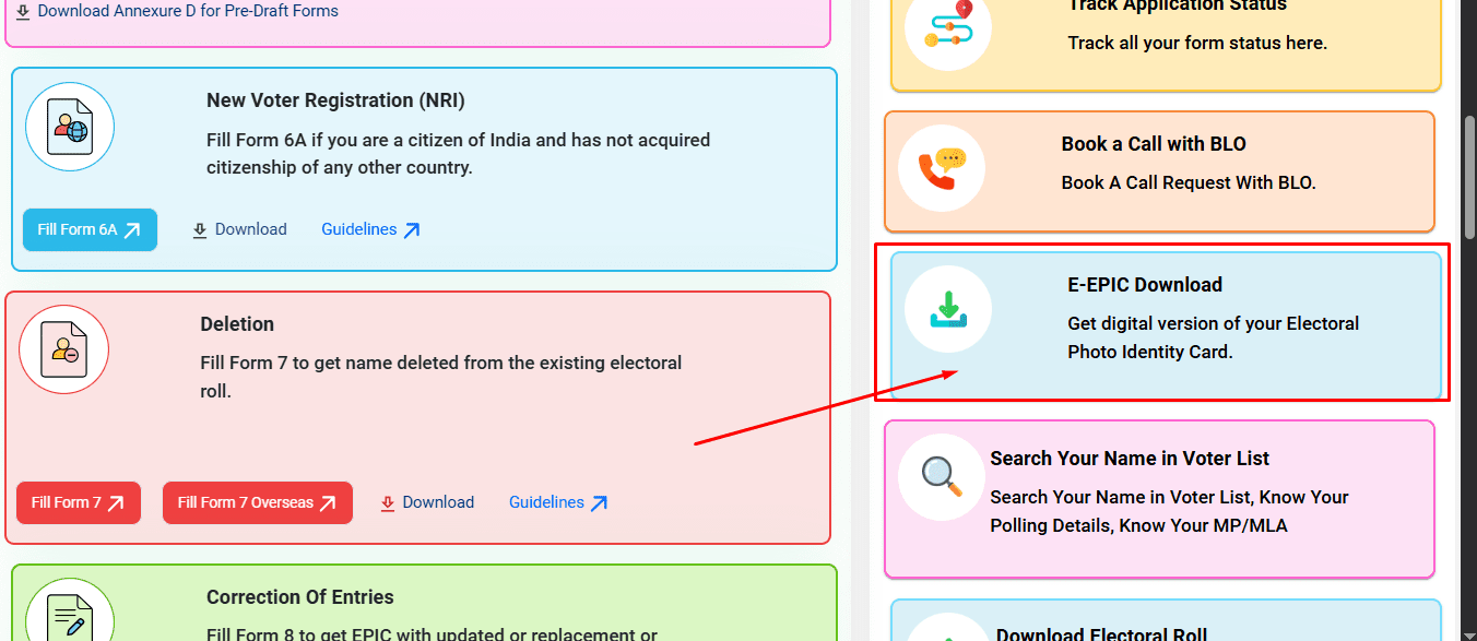 - वेबसाइट पर आने के बाद आपको E – Epic Download पर क्लिक करना हैं