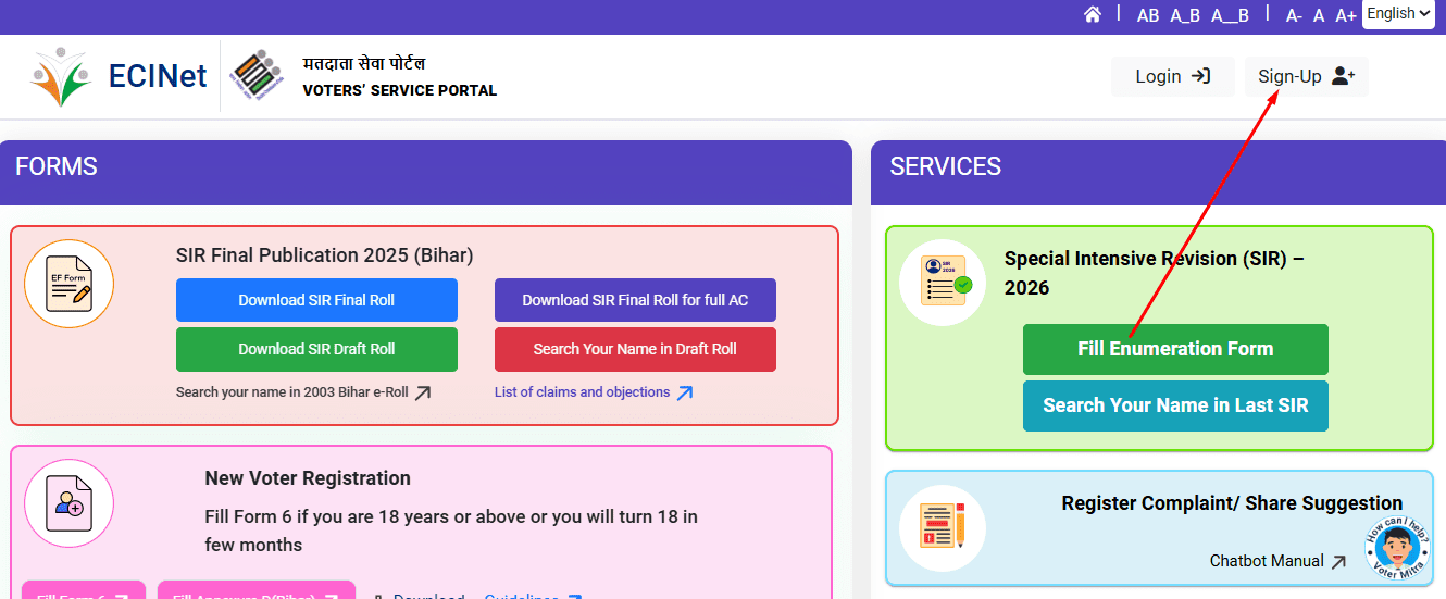 - सबसे पहले गूगल पर जाए Voter Eci वेबसाइट को लिखकर सर्च कर ले और ओपन कर लें