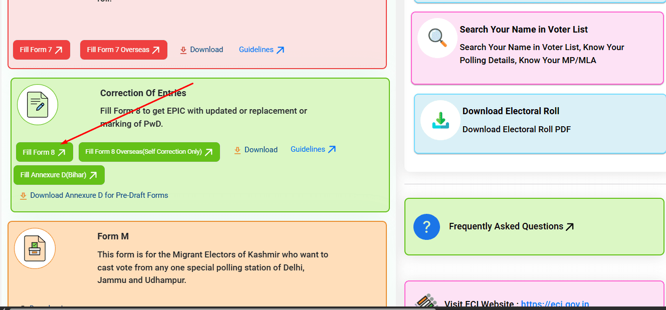 अब आप वेबसाइट पर लॉगिन हो जाएंगे वेबसाइट पर आने के बाद बहुत से ऑप्शन देखने के लिए मिलेंगे आपको स्क्रॉल करके नीचे आना है नीचे आने के बाद आपको Form 8 पर क्लिक करना हैं,