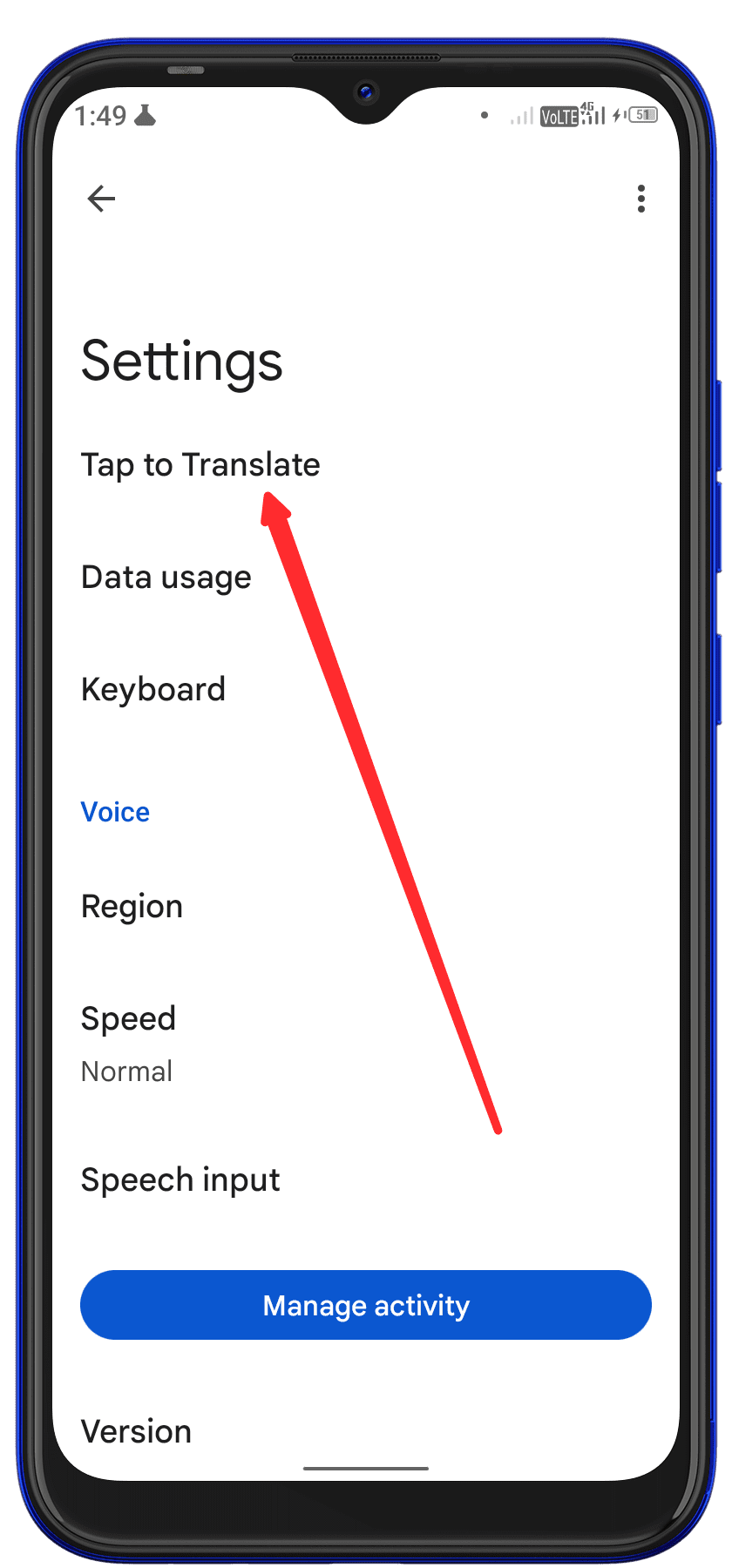 - Settings पर क्लिक करने के बाद अगला पेज ओपन होगा, यहां पर आपको बहुत सारी सेटिंग मिलेंगे लेकिन आपको Tab To Translate सबसे ऊपर वाले इसी ऑप्शन पर एक बार क्लिक करना है।