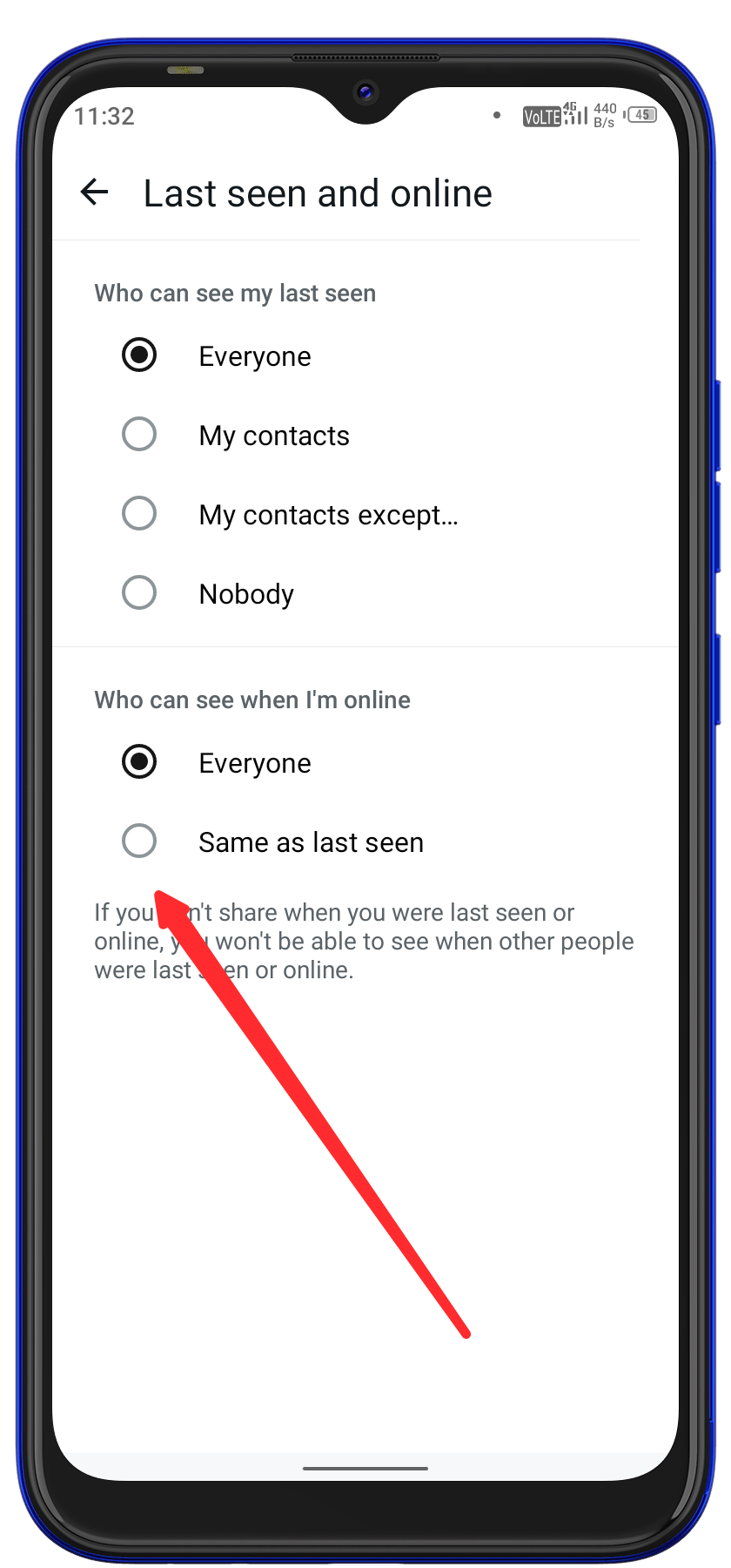 - अब NObody और same As Last Seen पर क्लिक कर देना हैं